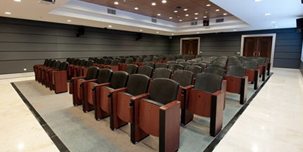 سالن کنفرانس با ظرفیت 110 صندلی دسته دار آمفی تئاتری