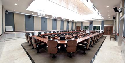 - مجهز به میز کنفرانس 60 نفری با LCD های مجزا برای هر واحد